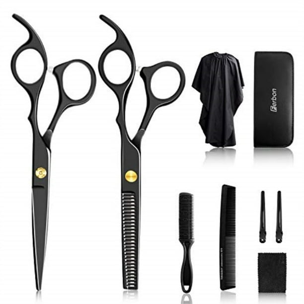 10pcs Hair Cutting Scissors Set Professional Haircut Scissors Kit With Cutting Scissors Thinning Scissors Comb Cape Clips Black Hairdressing Shears Set For Barber Salon Home Walmart Com