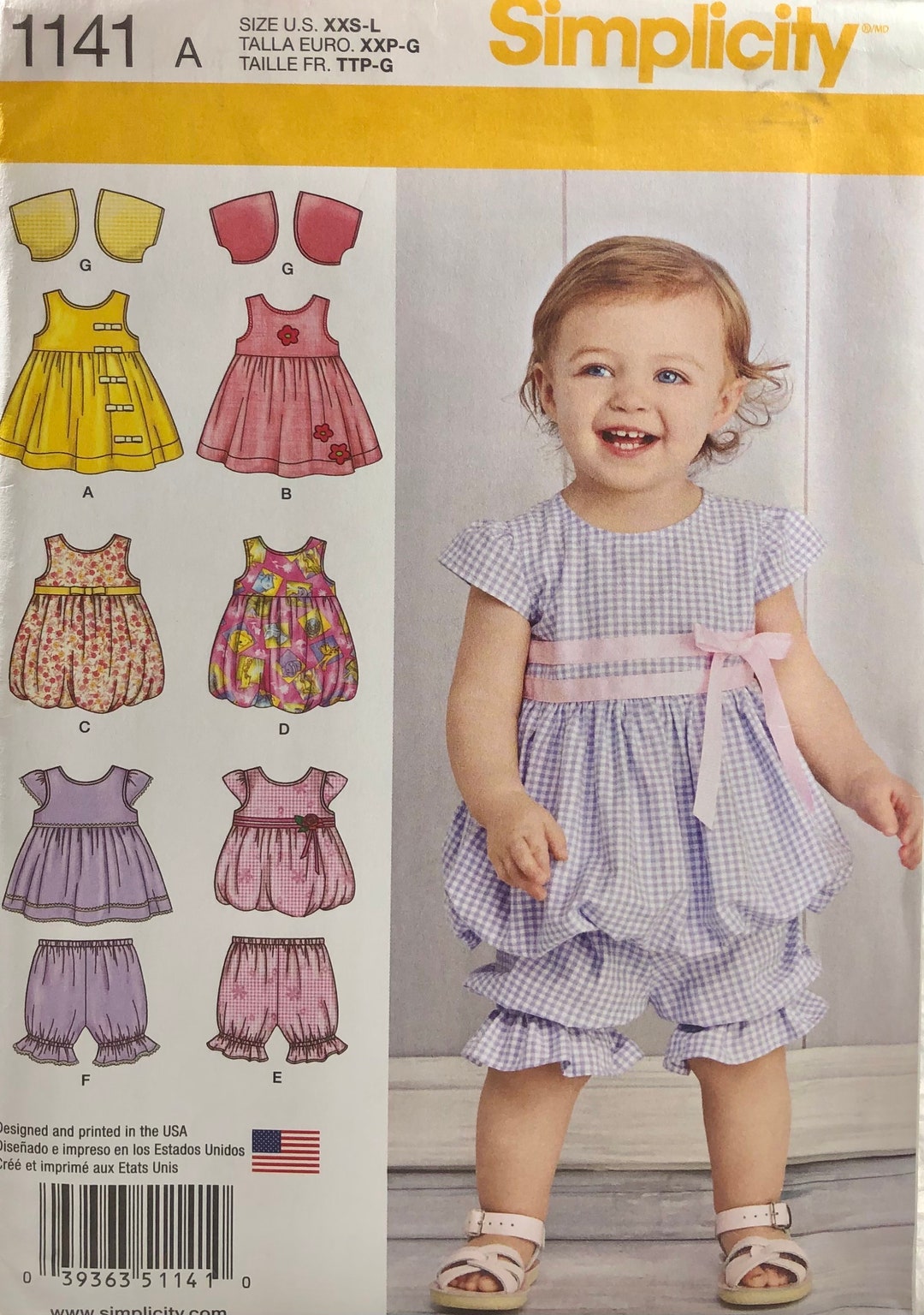 Amazon Com Simplicity 1141 Baby Clothes And Dress Sewing Pattern Sizes Xxs L Arts Crafts Sewing