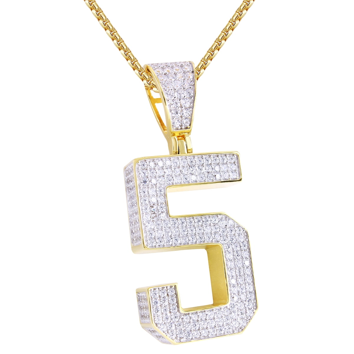 Sterling Silver Number 5 Block Initial Letter Men S Custom Pendant 24 Chain Walmart Com